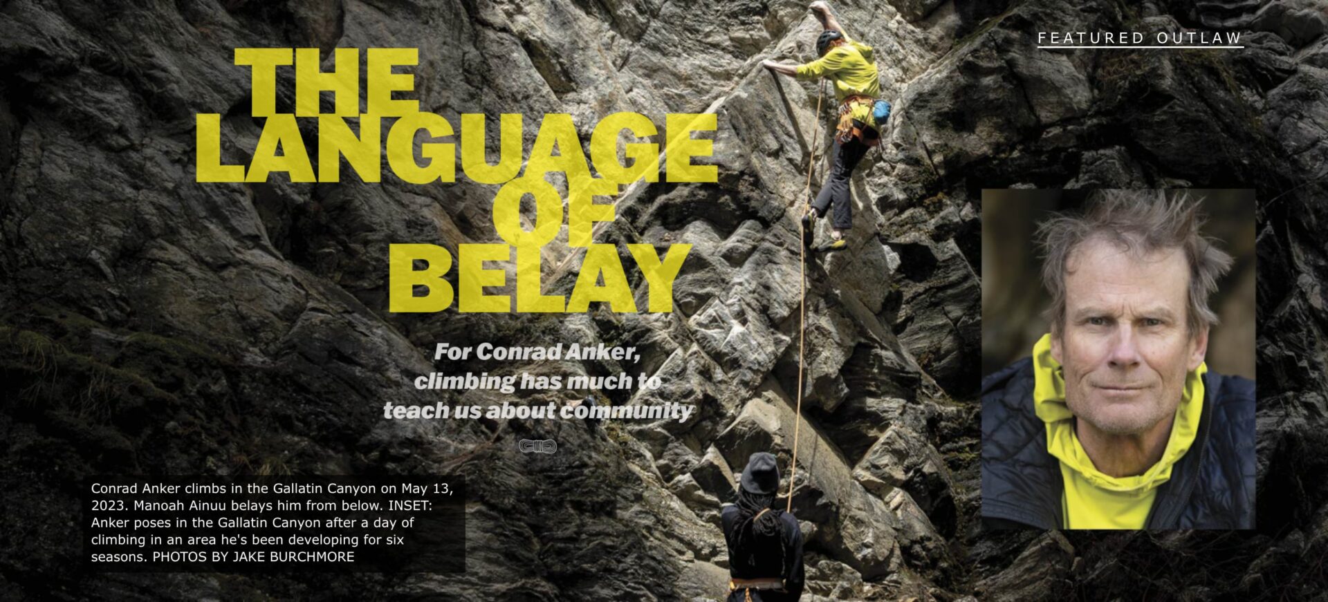 Translating the language of belay to the concept of community. BY BELLA BUTLER PHOTOS BY JAKE BURCHMORE Rain pelts the windshield of Conrad Anker’s white Chevy Silverado as he speeds…