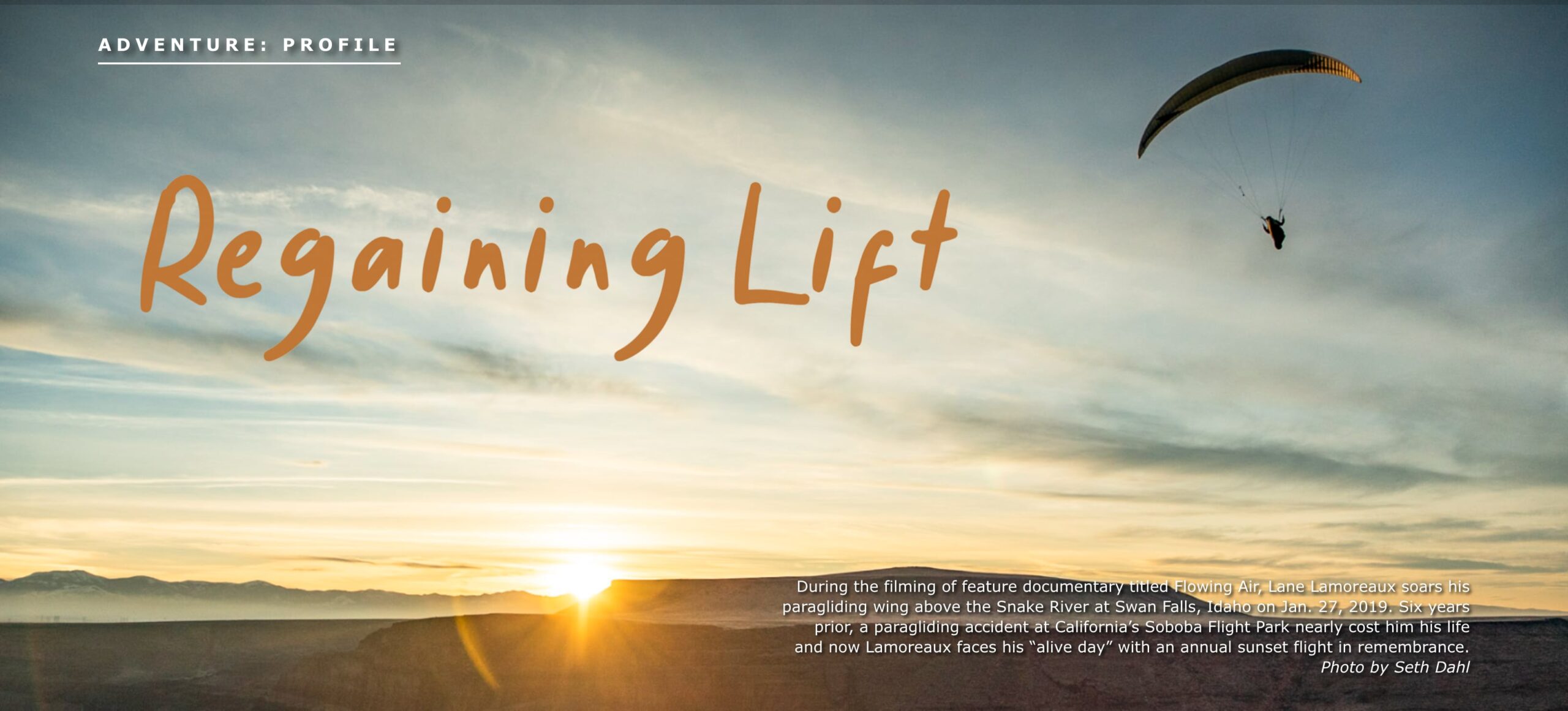 During recovery, Lamoreaux would close his eyes and go to the sky. He knew he’d return to paragliding, and it became his motivation to recover. He needed to walk. Just a few steps, he thought, to launch off the mountain.